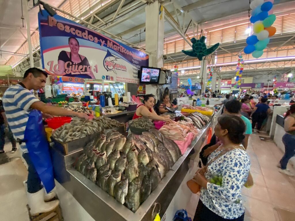 Nereida es locataria desde hace años en el pasillo de mariscos, sus padres comenzaron con esta labor y se las insultaron a ellas y sus hermanas; su local reconocido como la Güera 1 en el que trabaja desde hace mas de una década con la que ha podido sacar adelante a sus hijos señalo “hoy trajimos unas botanitas para convivir por que hoy es nuestro día, agradecemos a Dios que nos permitió llegar un año mas y poder festejar en compañía de las compañeras”.