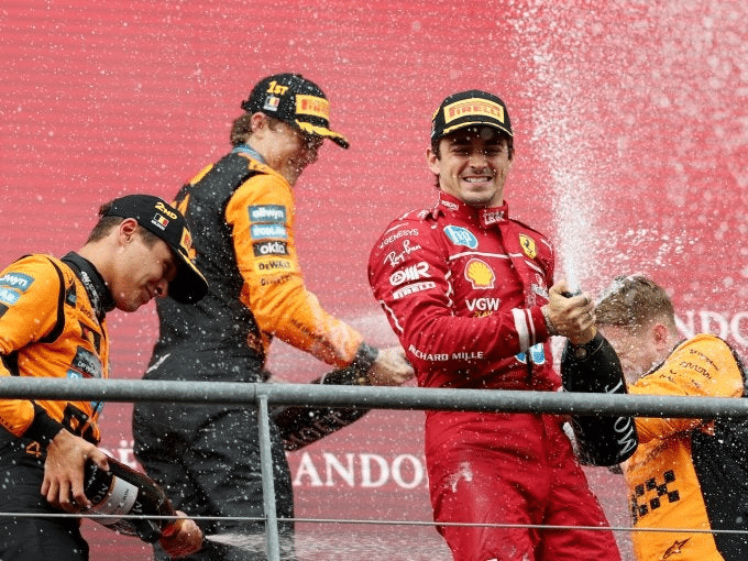 Piastri, Norris y Leclerc en el podio de Bélgica 2025