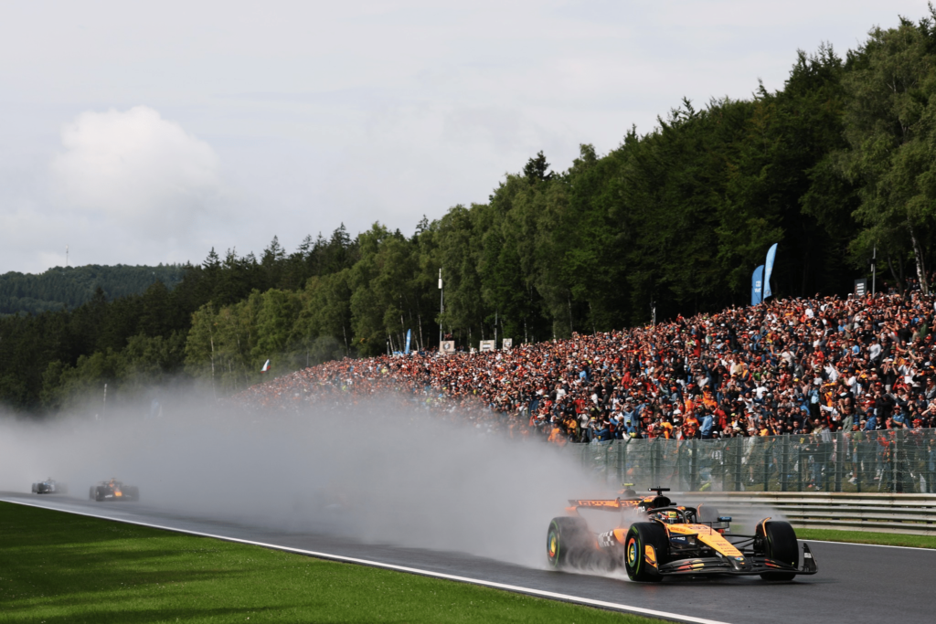 En una carrera marcada por una intensa lluvia y un retraso de 80 minutos en Spa-Francorchamps, Oscar Piastri de McLaren tomó el liderato desde la primera vuelta y no lo soltó hasta la bandera a cuadros. El australiano superó a su compañero Lando Norris, quien finalmente aseguró el segundo lugar, mientras Charles Leclerc completó el podio en tercera posición.