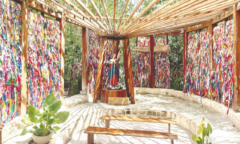 En los nueve años que tiene de existencia, el Santuario María Desatadora de Nudos en Cancún se ha convertido en un nuevo punto de interés para los viajeros nacionales o extranjeros que buscan más que playa, un lugar que nos invita a reflexionar sobre si los milagros existen y prueba de ello los cientos de listones.