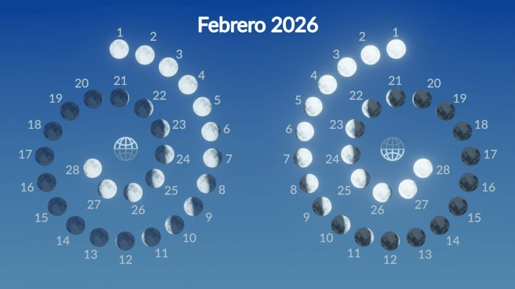 Febrero es un mes de cambios constantes en el cielo. Si quieres seguir el ritmo del satélite natural durante todo el mes, aquí tienes las fechas clave según el calendario oficial: