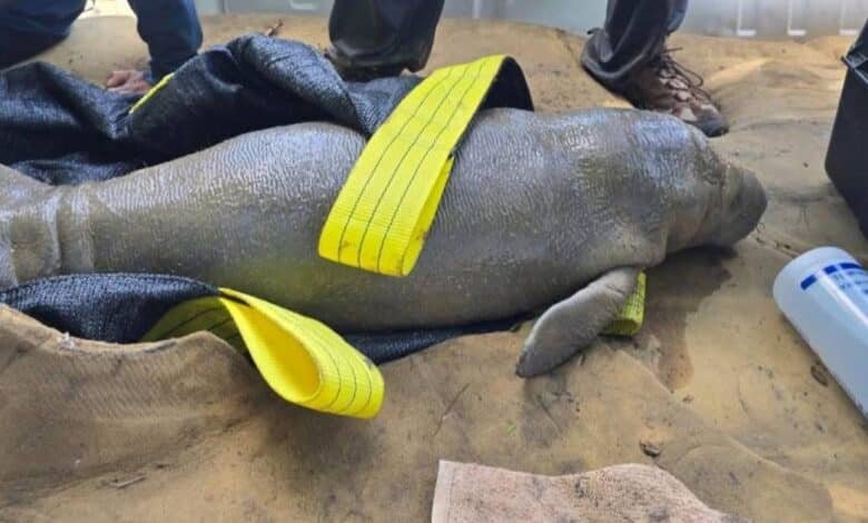 El descenso en las aguas de la laguna de Catazajá provocó que el manatí terminara varado.