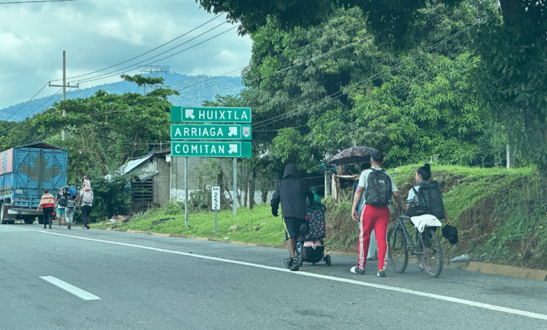 En Chiapas, la caravana sigue su curso en este segundo día la caravana que partió de Tapachula llego al municipio de Huixtla, han caminado 27 kilómetros por lo que algunos de ellos ya presenta laceración en los pies.