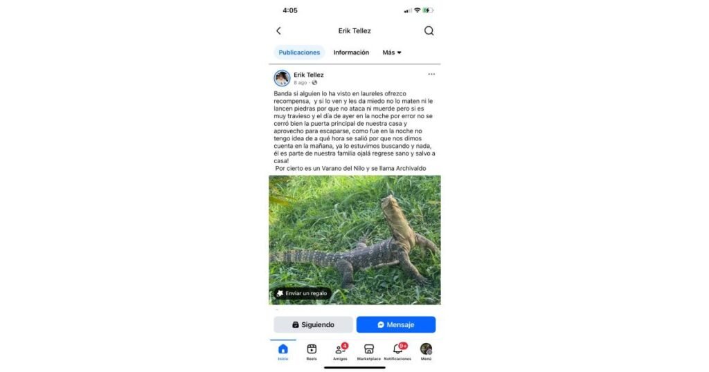 El pasado 8 de agosto, a través de redes sociales el usuario Erick Tellez, ofreció una recompensa a quien el diera información de Archivaldo, un varano del Nilo que se perdió en la colonia Laureles en el municipio de Tapachula, Chiapas.