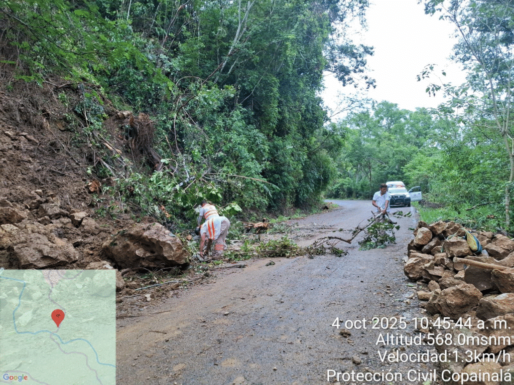 Integrantes de Protección Civil de Copainalá llevaron a cabo labores de extracción de material pétreo y la remoción de un árbol colapsado en el tramo carretero A.A.C (Guadalupe) – Agustín de Iturbide, en la zona de Campeche, que obstaculizaban parcialmente la vía.