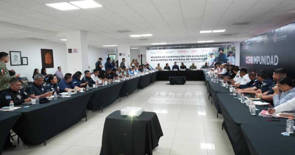 Durante una reunión con autoridades de los 30 municipios que concentran el 85% de la incidencia delictiva, Llaven Abarca advirtió que la aspiración de convertir a Chiapas en “el estado más seguro del país” no será posible mientras los gobiernos municipales permanezcan pasivos o con resultados mínimos.