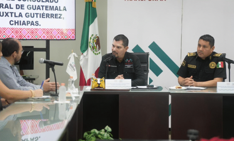 Tuxtla Gutiérrez, Chiapas.– La Secretaría de Seguridad del Pueblo (SSP) sostuvo una reunión de trabajo con autoridades del Consulado General de Guatemala en Tuxtla Gutiérrez, con el propósito de reforzar los mecanismos de comunicación y coordinación en materia de seguridad en la frontera sur.