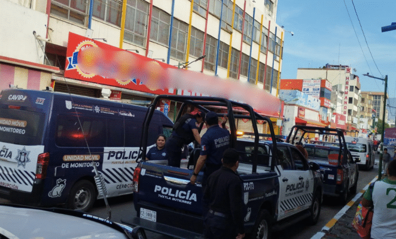 Tuxtla Gutiérrez, Chiapas.– Elementos de la Secretaría de Seguridad del Pueblo implementaron un operativo de vigilancia en las inmediaciones de los mercados Juan Sabines y Rafael Pascacio Gamboa, luego del bloqueo que realizaron locatarios para exigir el retiro del ambulantaje en la zona centro.