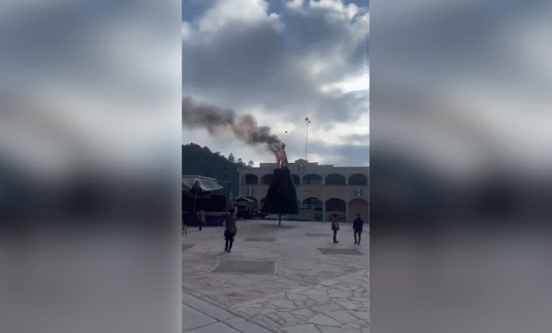 Tras el incidente, autoridades comunitarias confirmaron que el siniestro afectó únicamente la estructura del árbol navideño, descartando riesgos adicionales para la población.