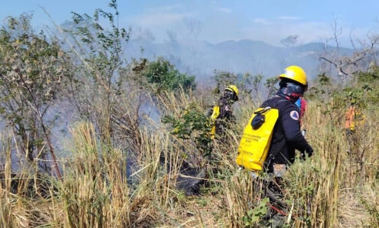 En las labores de combate participan 47 elementos de distintas corporaciones, entre ellas Protección Civil Estatal, CONANP, SEDENA, Guardia Nacional y Protección Civil Municipal de Arriaga, quienes realizan combate directo para contener el avance del fuego y salvaguardar a la población.