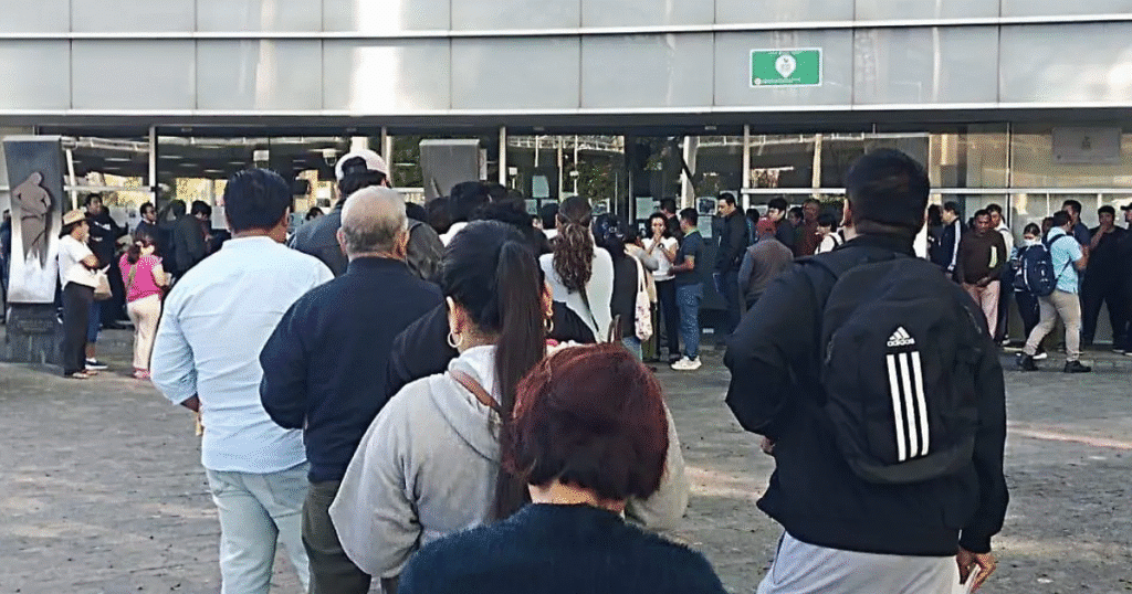 Incluso antes de la apertura de las oficinas, ya se observaba una importante concentración de personas en el exterior del inmueble.