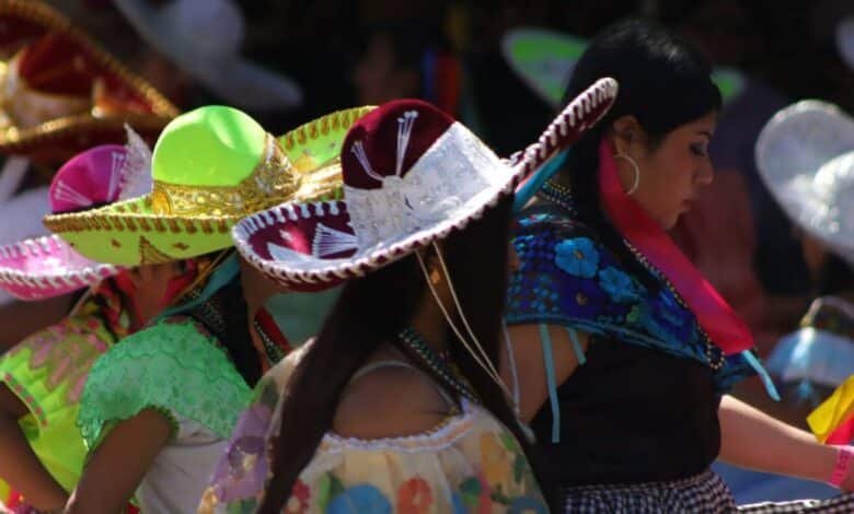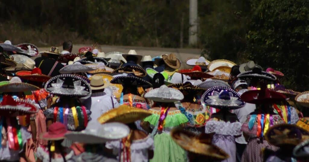 Con faldas coloridas, blusas bordadas y, de manera distintiva, sombreros de charro adornados con motivos coloridos, representando una fusión de tradiciones, cientos de mujeres salieron a danzar a las principales calles del municipio de San Fernando en Chiapas en el marco de los festejos de la virgen de Candelaria.