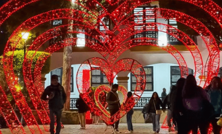 Comitán, Chiapas se ilumina con adornos por el Día del Amor y la Amistad