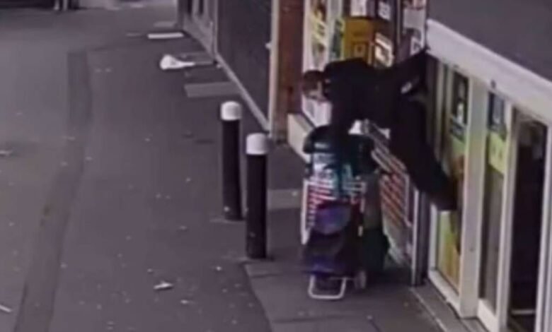 Mujer queda colgando de cortina de tienda en Gales; se vuelve viral