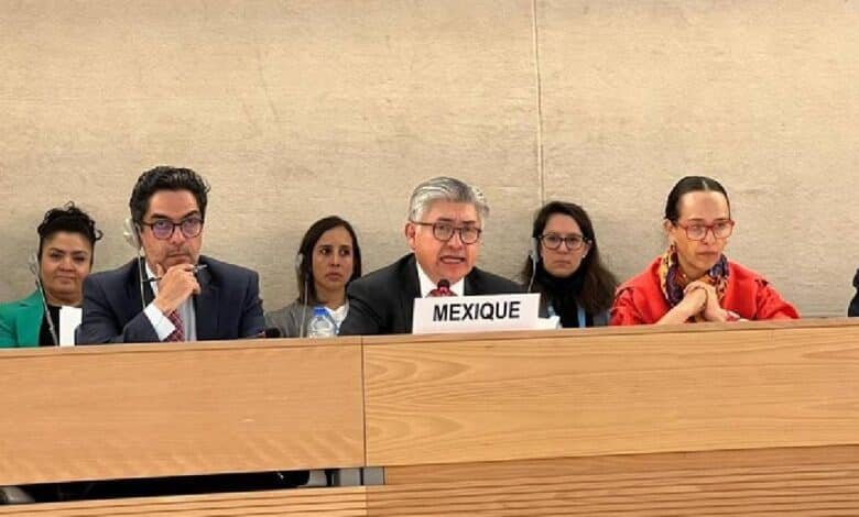 Joel Hernández, subsecretario para Asuntos Multilaterales y Derechos Humanos de la Secretaría de Relaciones Exteriores (SRE), informó de las medidas que México ha implementado entre 2018 y 2023, “destacando el compromiso de México con el cumplimiento de las obligaciones internacionales de derechos humanos”.