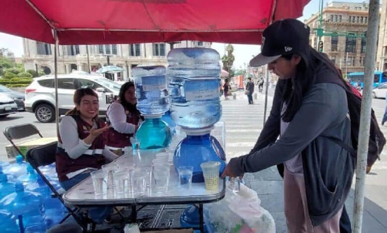 Cientos de personas visitan puntos de hidratación en Zócalo de CDMX