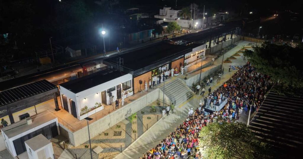 Rodeada de cientos de mexicanas y mexicanos, la presidenta Claudia Sheinbaum inaugura estaciones de la Línea K del Tren Interoceánico