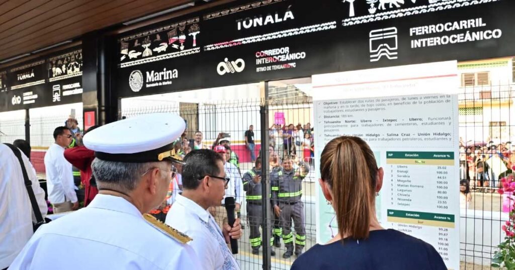 Durante el evento, la Presidenta, junto con las y los funcionarios presentes, llevó a cabo el corte inaugural del listón de la estación ferroviaria de Tonalá, Chiapas, así como la develación de la placa, con el que dio por reactivado el transporte de pasajeros. Asimismo, a lo largo del trayecto se realizaron actos simbólicos de corte de listón en las estaciones de Arriaga (donde también se efectuó un recorrido por el parque lineal), Chahuites y Juchitán, donde la población fue testigo del avance de esta obra ferroviaria que fortalecerá la integración logística de México con Centroamérica.