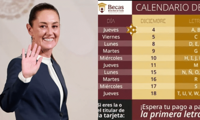 La Presidenta Claudia Sheinbaum confirmó el calendario de dispersión del último pago del año; los depósitos iniciarán este jueves 4 de diciembre siguiendo el orden alfabético.