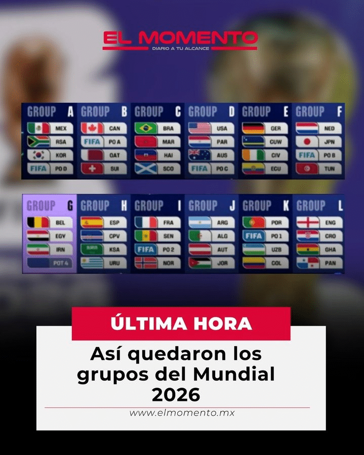 ¡La suerte está echada! 🎲🌍 Listos los 12 grupos de la Copa del Mundo. 🇲🇽 México en un sector muy variado con rivales de tres continentes. ¿Podrá Argentina 🇦🇷 defender su corona? 🤔👑 Hay partidos inaugurales que sacarán chispas ✨. ¿Cuál es el “Grupo de la Muerte”?