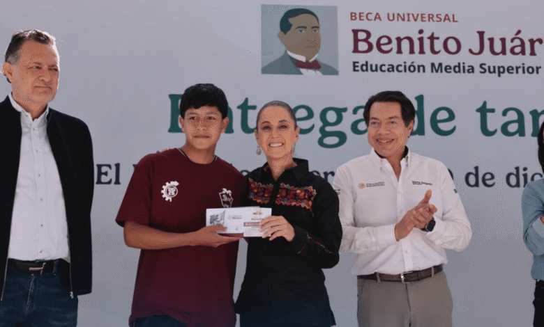 En Querétaro, la Presidenta de México, Claudia Sheinbaum Pardo, encabezó la entrega de tarjetas de la Beca Universal para la Educación Media Superior “Benito Juárez” y supervisó la construcción del nuevo Centro de Bachillerato Tecnológico Industrial y de Servicios (CBTIS) No. 304, en el municipio de El Marqués, que tiene un 90 por ciento de avance y estará listo el 27 de diciembre para ser inaugurado en febrero, y con ello cumplir el sueño de que las y los jóvenes vayan a la preparatoria y accedan a la educación como un derecho.