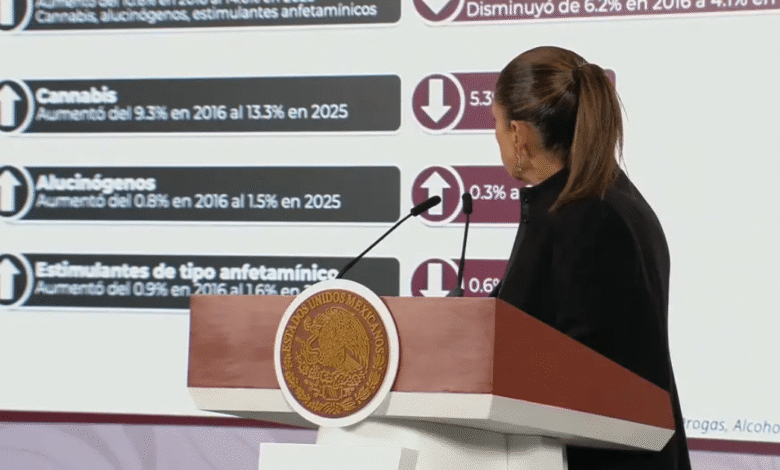 Los patrones de consumo de sustancias en México han registrado modificaciones relevantes en los últimos años, de acuerdo con los resultados de la ENCODAT 2025, dados a conocer por la Secretaría de Salud durante la conferencia matutina encabezada por la presidenta Claudia Sheinbaum.