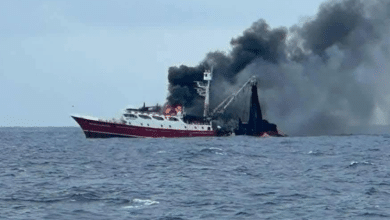 Rescatan a 25 pescadores tras incendio de su barco atunero