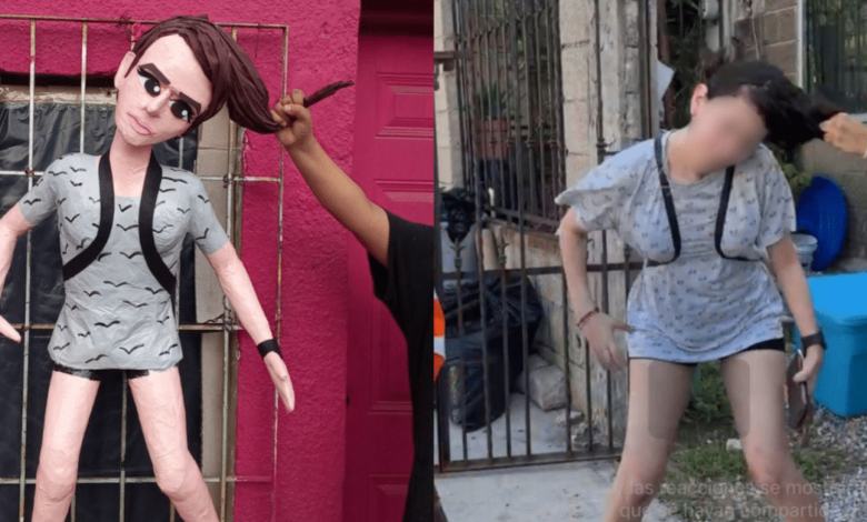 Tras el viral desalojo de “Lady Ramona” en Tampico, una piñatería creó una figura inspirada en la escena donde le jalaron el pelo frente a cámaras.