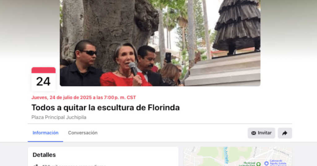 La convocatoria, difundida a través de Facebook con el título “Todos a quitar la escultura de Florinda”, ha acumulado más de 20 mil interesados y más de 2 mil confirmaciones. La publicación original expresa una postura crítica: “Ya estuvo suavicremas de que estén quemando a nuestro pueblo, vamos a quitar la escultura de la vergüenza”.