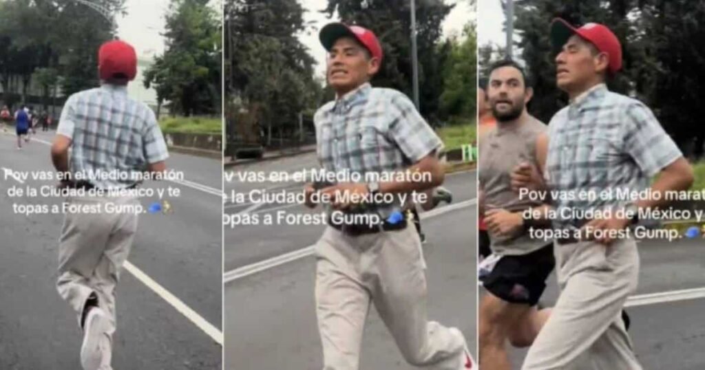 En el marco de una reciente maratón celebrada en la Media Maratón de la Ciudad de México un corredor decidió rendir homenaje a uno de los personajes más icónicos del cine: Forrest Gump. Vestido con la clásica gorra roja, camisa a cuadros, pantalones cortos y una frondosa barba falsa, este participante no solo completó el recorrido, sino que también se robó todas las miradas y aplausos del público.