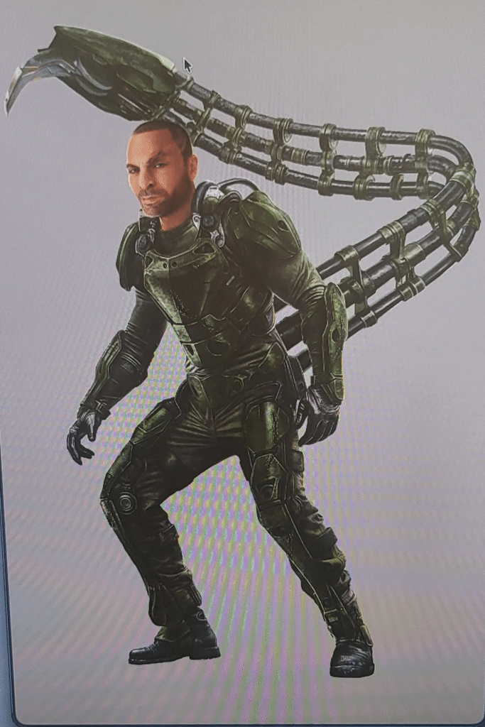 Por otro lado, Mac Gargan, mejor conocido como Scorpion, presenta un cambio radical en su indumentaria. Su traje es mucho más táctico, oscuro y con un tono bastante serio en comparación con sus aliados.